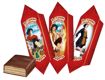 Глазированные вафельные конфеты большого формата с шоколадной начинкой и кофейным ароматом.