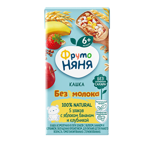 Каша ФрутоНяня жидкая безмолочная 5 злаков с яблоком, бананом и клубникой 200мл*18шт.