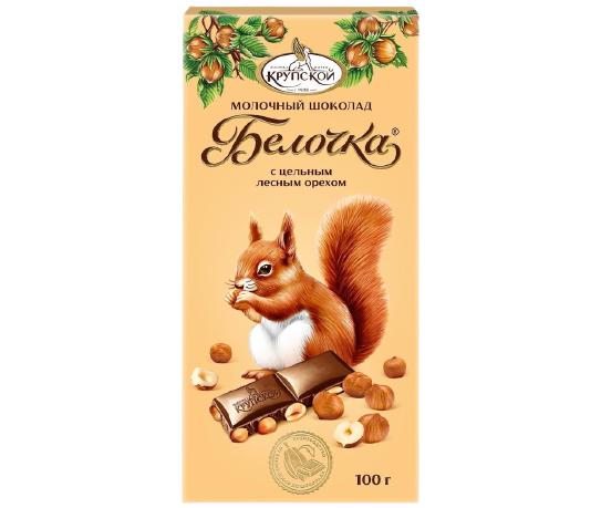 «Белочка» Шоколад молочный с цельным лесным орехом, 100гр*15шт.